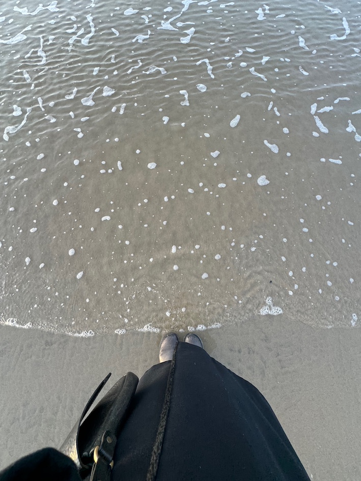 That morning, I knew I needed to get down to the beach. I could see from my window that the tide was out, which meant there would be sand. I love crunching over the stones and then suddenly walking onto the sand; it’s quiet. It’s a different feeling; the sand moves and is wobbly; standing on the sandy shoreline with the sea lapping at my boots, I felt calmer. I just breathed, smelled the sea, listened to the sounds of the waves, and closed my eyes. Those moments fill my heart and quiet my mind; I know these feelings and thoughts will pass in time.