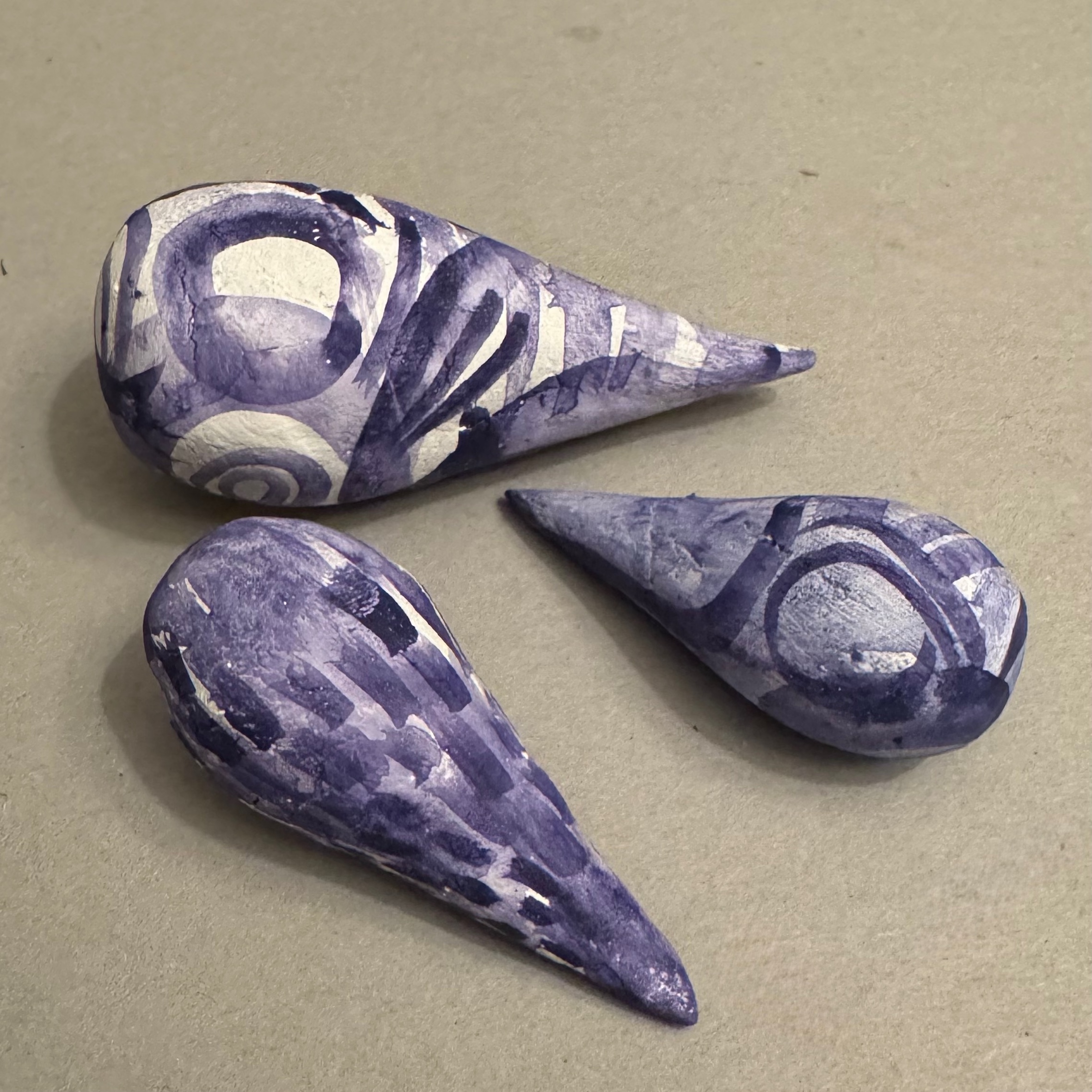 My connection with the sea is profound, and I decided to create these “Sea Elders” from the North, South, East, and West. They support me in both good and bad times. When I speak to them, they answer me. Recently, I visited the beach and felt so discombobulated that I shouted and cried. I expressed my gratitude to the sea for its support, and thanked the moon and the sun as well. As I turned around and looked down, I discovered my first piece of light blue glass (or “sea treasure,” as my grandson and I call it). I felt incredibly moved that, in the vastness of the beach, it had offered me this exquisite piece of treasure.